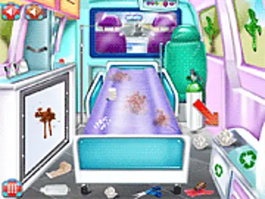 Trebuie să cureți această ambulanță veche și murdară. Mătură murdăria, șterge pata, strânge tot gunoiul și înlocuiește tot geamul spart. Și înainte să o poți conduce, îmbracă-ți asistenta drăguță.