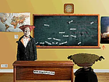 f you enjoy constructing prose gems like, "stab your finger in my big bumcake," this is the game for you! Move the words on the blackboard, mouse over'em, and hear Angry Kid spew. And that's not all! Click on the button to the left of Angry Kid to play a Space Invaders-esque chalkboard game to win more foul words!
