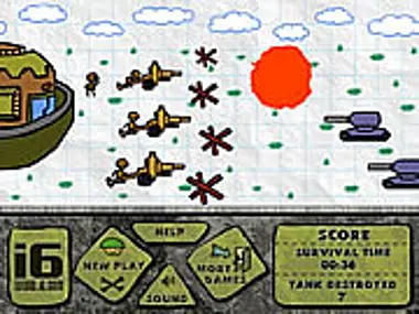 Survive during 5 minutes until the backups reach you. Make click in the cannons to shoot. Make click in the barracks to build new cannons.