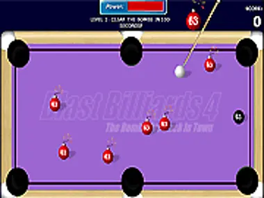 15 levels of shooting bomb pool balls into the pool table pockets before time expires.