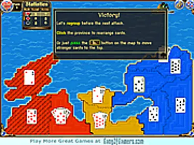 Este un război de cărți! Echipează-ți armata și revendică teritorii în acest amestec dintre jocul clasic de cărți, War, și strategia tip Risk. Luptă împotriva adversarilor vicleni de cărți pe peste 20 de hărți și dărâmă-le casele. Joacă Cards Wars de la GangofGamers astăzi!