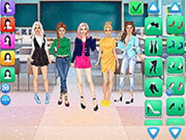 Încearcă noua noastră aplicație fashionista "College Girls Team Makeover" aici pe Y8!. Aici poți îmbrăca 5 cele mai bune prietene de liceu. Ele sunt cele mai populare fete din școală și întotdeauna împreună. Toată lumea ar vrea să facă parte din gașca lor de fete! Ele reușesc să fie cele mai stilate fete din școală, pentru că au propriul lor stilist de modă și acela ești tu! Tu poți controla întregul lor aspect, de la culoarea pielii și a ochilor până la coafură și machiaj. Peste 1000 de articole de îmbrăcăminte și accesorii îți stau la dispoziție! Bucură-te de jocul acesta de makeover și îmbrăcat fete aici pe Y8.com!
