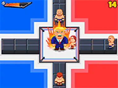 Come Fight Me este un joc de wrestling cu celebrități și un gameplay amuzant. Preia controlul unui personaj puternic în centrul ringului, înfruntând valuri de wrestleri care atacă din dreapta. Reflexele tale vor fi testate pe măsură ce apeși butoanele direcționale pentru a livra lovituri bine sincronizate și a doborî adversarii care vin. Pe măsură ce progresezi, vei debloca abilități speciale care cresc temporar forța loviturilor tale, permițându-ți să dobori mai mulți inamici la rând cu o singură lovitură puternică. Joacă jocul Come Fight Me cu grafică pixel art acum pe Y8 și distrează-te.