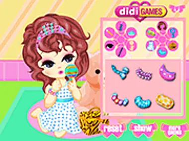 Această fetiță vrea să arate ca păpușa ei drăguță cu păr creț. Știi că poți face asta folosindu-ți abilitățile de stilist! Folosește-i instrumentele de machiaj și accesoriile colorate ca bomboanele, fă-o să arate super drăguț!