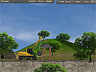 Condu un excavator cu macara peste munți și obstacole, menținându-l în echilibru. Folosește bila de demolare pentru a elibera calea și a deschide rampa remorcii camionului.