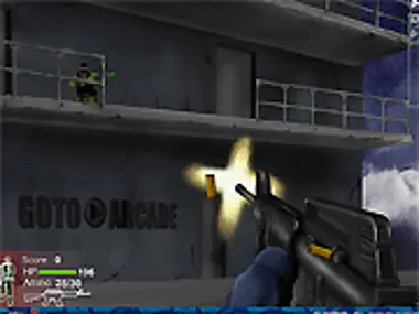 Shoot the enemy soldiers that pop up. Reload and watch out for tanks that try to blast you away.