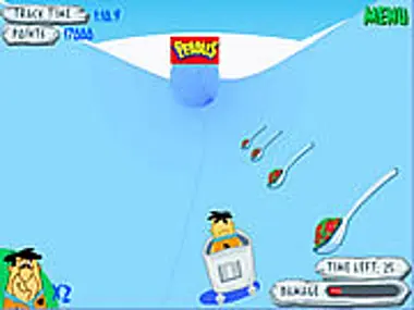 Fred Flinstone is participating in a bobsleigh competition. You need to help him get to the next checkpoint before the time is over. Apart from obstacles, there are spoons and plates with salad and other bonuses and power-ups. Pick them up for higher score.