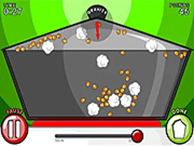 Change the heat & gravity as you try to get all popcorn kernels popped without burning others.