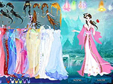 This ancient Chinese has stunning traditional outfits. Can you select an traditional outfit for her and dress her up?