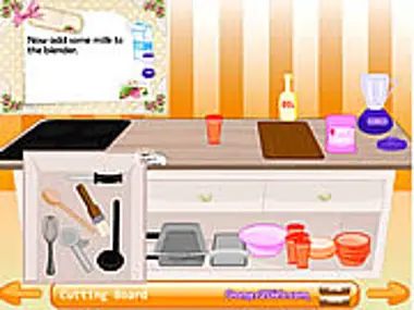 You are about to learn how to make a complete meal!First you need to take a look around the kitchen so you know where every-thing is located. Notice when you are holding an item and you click there will be red circles.These are to help you find your clicking location,they can be turned off in the menu screen. Today you are going to be preparing a complete meal.You will be making a drink,an appetizer,the main course and you can't forget dessert!Lets get going.