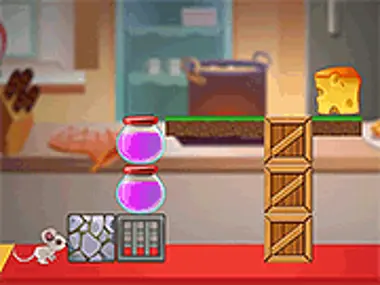 Help the mouse and create a path to the cheese. Click on objects and move the objects and create a safe path to the cheese.