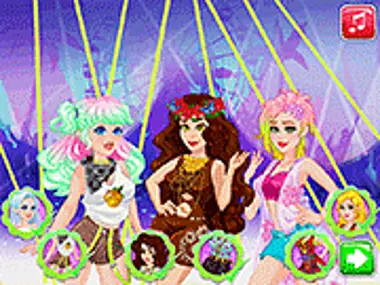 Hai să dăm startul petrecerii! Crystal, Olivia și Natalie vor merge la o petrecere la un festival de muzică, iar tu vei organiza evenimentul, vei alege decorațiunile și le vei ajuta să se îmbrace cu ținute minunate de festival. Pune niște muzică pe care să dansezi, joacă-te cu spray-uri colorate și fă o poză ca să-și poată aminti acest concert minunat!
