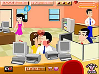 Crezi că biroul este cel mai bun loc pentru săruturi? Din păcate, un cuplu tânăr avea chef să se sărute, dar biroul este plin de oameni cu copilași, așa că săruturile sunt interzise. Singura soluție este să iasă pe furiș și să se sărute fără a fi văzuți de nimeni. Crezi că i-ai putea ajuta? Atenția ta este foarte apreciată în acest joc distractiv de săruturi.