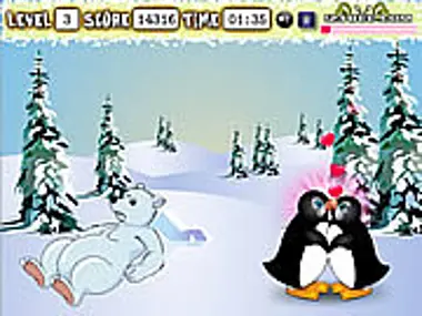 Sărutul este un simbol al Iubirii. Pinguinii vor să se sărute, dar sunt puțin îngrijorați că cineva i-ar putea observa. Ajută-i să facă asta, avertizându-i la momentul potrivit. Parcurge toate nivelele cu succes și câștigă jocul.