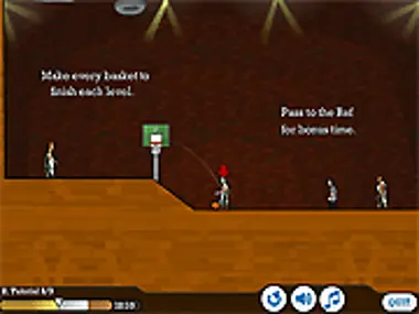 Beat the time as you toss the basketball to other players on your team & make baskets.