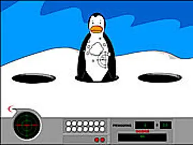 Click on the penguins when they popout. You get 10 points when you hit one. If you miss you get 10 points deducted off your score. Also when you miss you lose snowballs.
