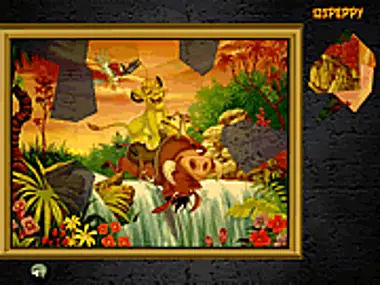 Complete the Lion King puzzle and see young simba toghter with Timon and Pumba.
