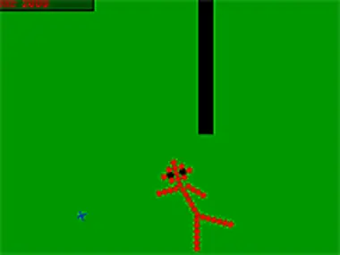 Dodge all the objects that try to kill your stick figure by clicking on buttons when they appear.