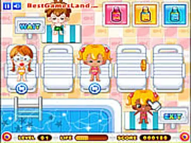 in this game you need to suntan your guests. Apply the oil according to the guest taste on the front and the back of him to get tanned beautiful. If you are over tan or lass tan you lose your life. Don't leave your guests too long on the bed because they will get burned. Take the guest to the exit after he is tanned.