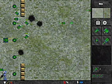 Build up units and send them over to the enemy base in waves to try and defeat their main base unit.