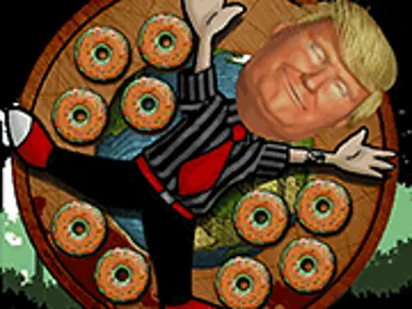 Joc de darts Trump - Joc de darts Flash. Scopul jocului este să lovești toate gogoșile, dar să eviți să-l lovești pe Trump. Clic stânga pe mouse pentru a arunca săgeți în GOGOȘI. Încearcă să lovești mai aproape de centrul gogoșilor pentru mai multe puncte și nu-l lovi pe TRUMP. Distrează-te ACUM!