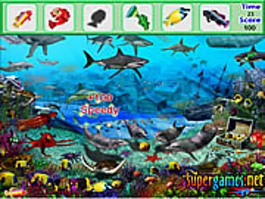 Sunt trei nivele. Găsește toți peștii ascunși înainte ca timpul să se scurgă pentru a avansa la nivelul următor. Vei primi 100 de puncte pentru fiecare obiect ascuns găsit și -25 de puncte pentru fiecare clic greșit.