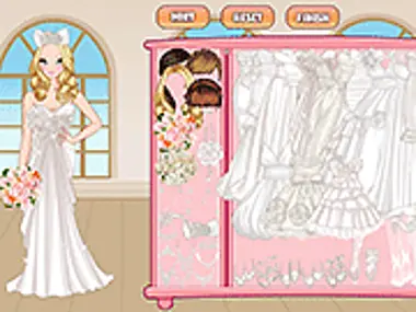 Click clothes and accessories to create a traditional wedding look for this monochromatic bride. Hit Finish to walk her down the aisle.